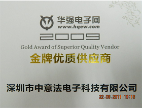 2009年開始連續10年被評為深圳10大電子元器件金牌優質供應商。